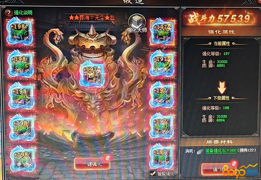 装备强化是很多传奇游戏玩法的一个基础功能,通过强化来提升装备的属性,大家要注意一定保证每个部位等级一致。这样会有套装效果的加成。越往后强化成功概率越低,所以大家要准备好资源哦。