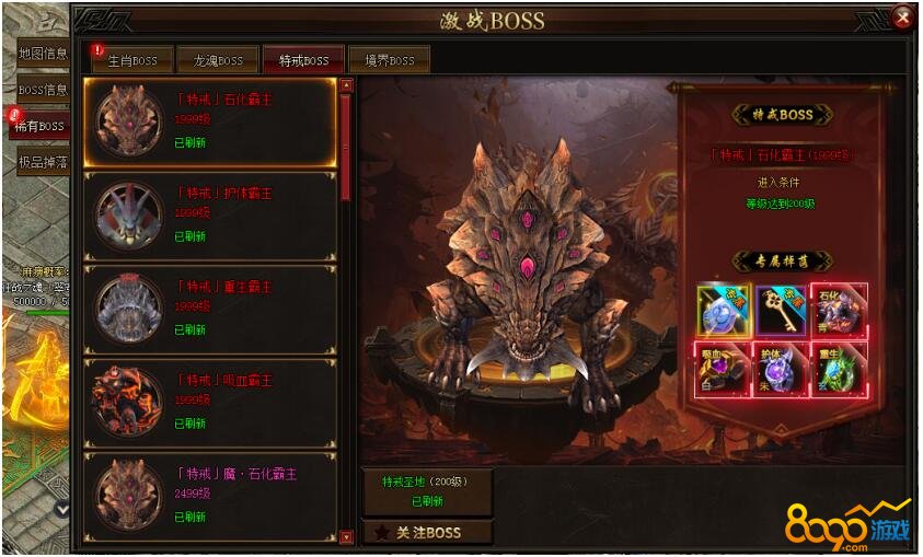 特戒BOSS极其稀有,不可避免有竞争者,展现你真正的实力,击败那些抢你机缘的竞争者独霸BOSS奖励!