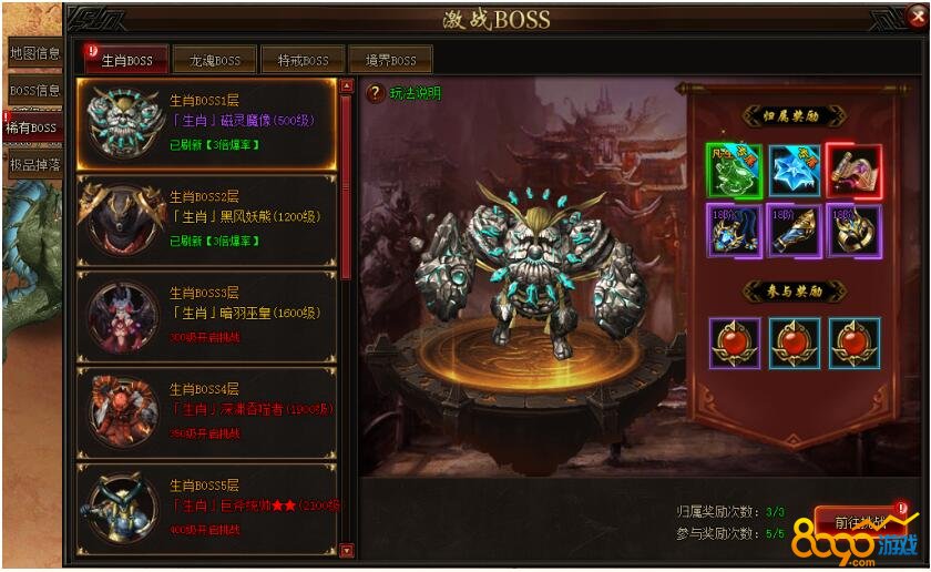 生肖BOSS可产出大量生肖装备,是提升生肖的主要途径。