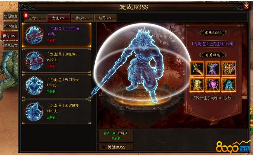 玩家每日可获得3次神武BOSS归属机会,获得神武BOSS归属奖励会扣除1次归属次数。归属次数为0时,将无法对神武BOSS造成伤害。