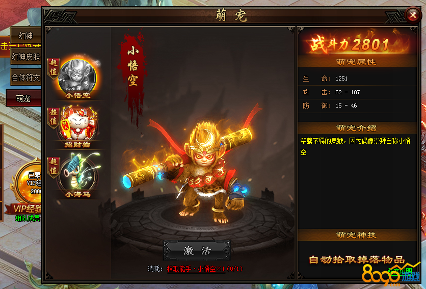 以上就是傲视霸主萌宠系统介绍以及小悟空宠物如何获得详解。
