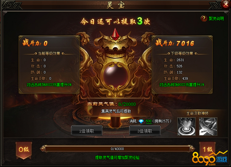灵宝系统的话主要是提升战力,以及对PK影响比较大的一个技能。都是按百分比暴击属性去加的。所以非常划算。