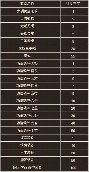 很多玩家不太清楚什么装备可以祈灵?或者是装备乞灵需要多少元宝?亦或是乞灵需要些什么?不要急,下面我为大家一一解答。
