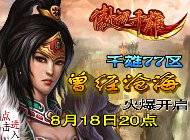 搜索"8090网页游戏"8090傲视千雄将于8月18日 20:00 开启双线傲视千雄77区"曾经沧海",各路英雄请火速进驻,共同体验万人在线热血竞技的快感!