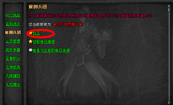 首先 你要先成为六级雇佣兵团。然后会出现封王的图标。