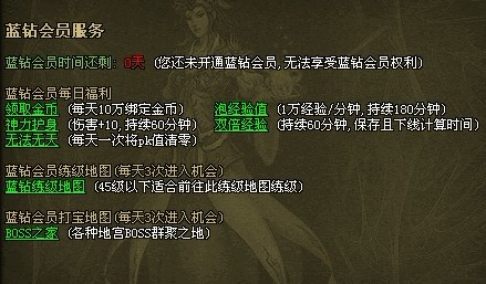 傲视千雄的蓝钻会员很便宜,500绑定元宝就可以获得。不过只有三天时间。 很多玩家会弄混会员和蓝钻会员。 按“G”打开综合界面,点击会员管理,拉动滚动条。下面才是蓝钻会员哦~