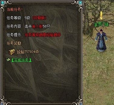 按照任务提示,击杀相应怪物达到任务要求数量后,即可回去找“金罗门徒”点击完成任务,领取大量经验。15级任务全部完成,共可获得4200多万经验!金罗试炼是玩家们飚经验的最好途径,对于不满意的任务还能放弃重接,超具人性化的精彩内容均在《傲视千雄》。