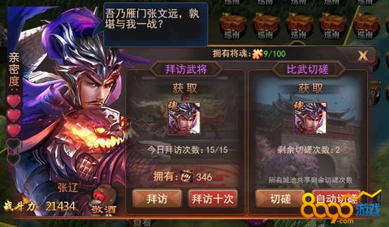 拜访需消耗拜帖,每次拜访均会获得1个对应武将将魂