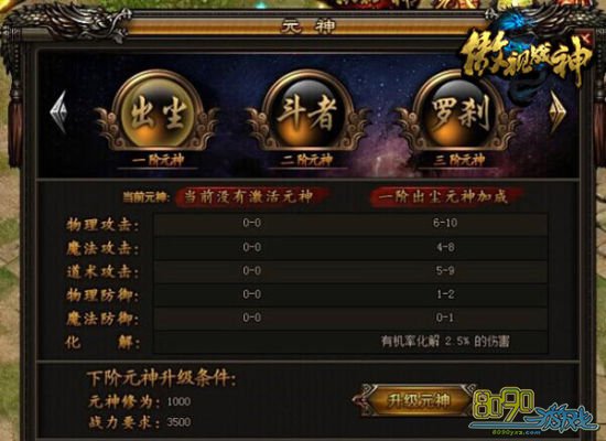 天威无极元神升级到神威霸天元神需要元神修为8000000