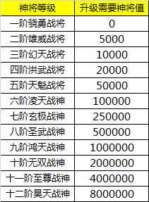 十阶无双战神升级到是十一阶至尊战神需要神将值4000000
