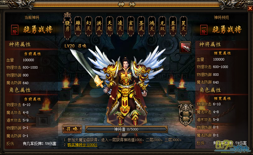 二阶雄威战将升级到三阶幻天战将需要神将值10000