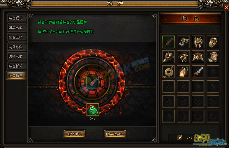 消耗道具(祈灵玉)来帮装备增加一条极品属性