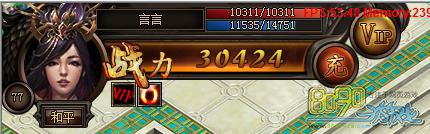画面右上角可看到玩家战斗力、战斗状态以及血条和蓝条,玩家可随时监控自己的战斗状态和血量,以备不时之需。