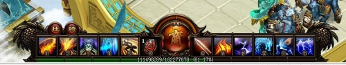 画面正下方为玩家操作栏,玩家可通过此进行技能操作,而点击“挂”字按钮可切换挂机状态。