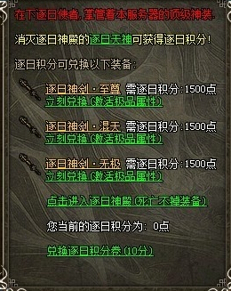 只要集齐1500积分就能换取逐日神剑了,大家要每天都去刷逐日副本哦~