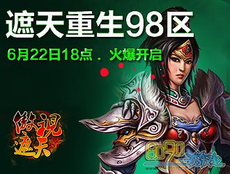8090傲视遮天将于6月22日18:00开启遮天重生98服,各路英雄请火速进驻,共同体验万人在线热血竞技的快感!