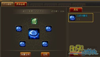 获取高等级灵石最快速的途径是合成,过程中需要大量低级灵石和合成符,合成符可以通过商城产出,低级灵石的来源就多了,并不是很稀有的物品,合成1块高级石头需要3块低级石头,比例就是1比3。
