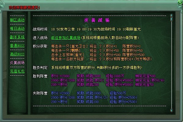 积分大于200 小于2000的奖励: 江湖威望: (个人积分/2) 经验:(个人积分*2500)