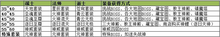 2、积累到一套圣魂后,就可以考虑去守更高级的BOSS,包括黑狱、神威魔域、三大神殿,来获得顶级装备,包括各职业的特殊武器、神威套装以及逐日套装;