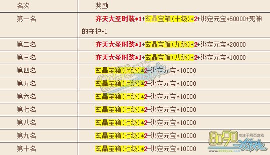 (前三名上榜需分别满足充值30w、10w、5w元宝)