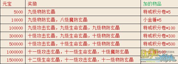 活动期内累计充值达到下列额度可以领取相应的超级玄晶大礼包