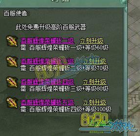1、活动期间6日、7日、8日、9日的每日充值排名第一的玩家(最低充值100w元宝) 均可以领取一把百服神器一级;