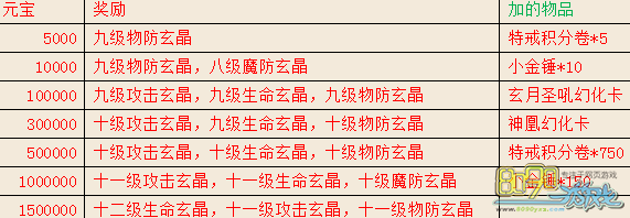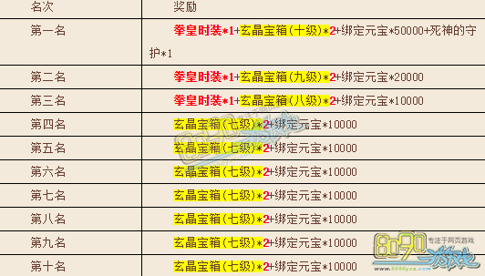 第一名:绑定元宝20000 玄晶宝箱(七级)*1