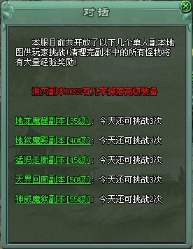 一进入单人副本,很多小怪就自动围了上来,开始攻击它们,一开始怪围上来的少,此刻就要赶快消灭它,有的会掉强效太阳水,立刻拾取。然后围上来的怪会越来越多,密密麻麻的让人感觉挺难受,索性闭着眼睛打吧,等打得差不多了,拾取怪物掉的药水,开始挑战50级的BOSS。50级的BOSS血比较厚,大约在20000,如果蓝没了记得要吃药水。血没了记得跑远一点吃金疮药。基本上问题不会很大,很快BOSS就被干掉了。愉快的干掉BOSS以后,就完成了一次单人副本的挑战!