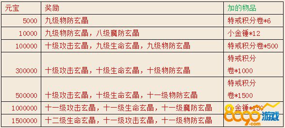 活动期内累计充值达到下列额度可以领取相应的超级玄晶大礼包