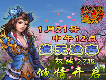 8090傲视遮天将于1月21中午12:00开启双线二十七区“遮天逢春”,各路英雄请火速进驻,共同体验万人在线热血竞技的快感!
