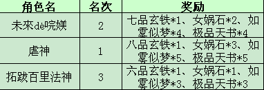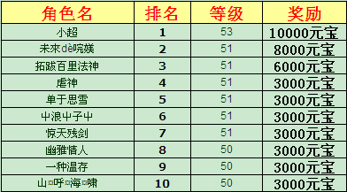 感谢玩家参与我们31区“人杰遮天”的新区冲级活动,恭喜以下玩家胜出,名单如下: