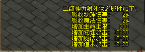 中的神兵天将玩法很特别,可以再次提升玩家的属性值以及元神等级,它和附魔勋章有异曲同工之妙,今天这里就将傲视遮天中神兵天将玩法中的神力附体1-10级属性列表说明!看看这些神力附体的等级和属性你就知道他的作用了。