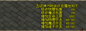 8090傲视遮天一共有十级神力附体呢,由于图片纵多,大家自己去npc”神兵天将”那看吧。玩家除了强化装备可以提升属性之外又多了一条出路,可喜可贺。