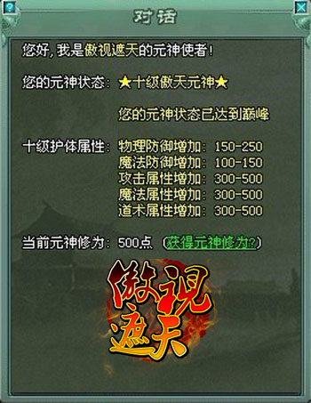 8090傲视遮天中的元神装备能让玩家获得元神护体效果可以增加各个属性的数值,而元神值的获得方法只有有两种,一是消灭游戏中的各种BOSS,二是在商城购买元神令牌。玩家们提升元神的地点在流云观,玩家可以选择从隐龙村到流云森林再到达,或者从龙城道毒蛇沼泽再到达。