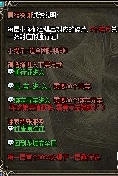 1、黑狱,道士真正的天堂,1-9单挑没问题,下一趟运气好能得到元神装备,在前期这些都是抢手货,7层还能达到道士梦寐以求的青云伏魔扇。通天。
