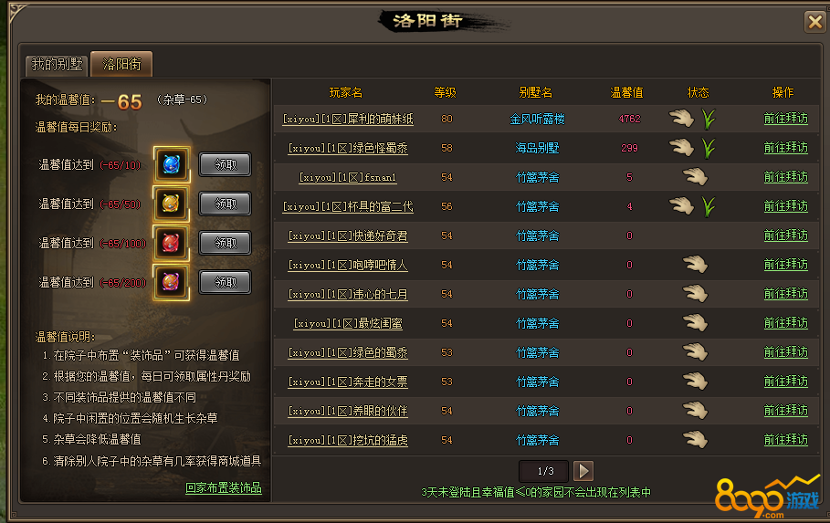 同服的玩家会根据温馨值进行排序,温馨值越高排序越靠前。