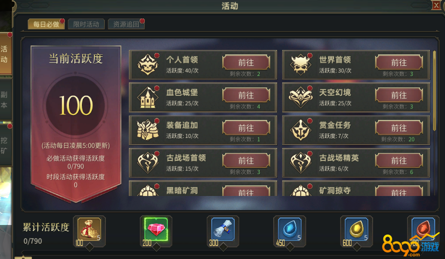 说到贪婪之塔,那肯定要说到贪婪塔的“入场卷”活跃度了,玩家可以在世界活动页面内看到自己当前的活跃度和完成什么活动可以获得的活跃度数,VIP等级越高,每天可以获得的活跃度上限也会越高哦!