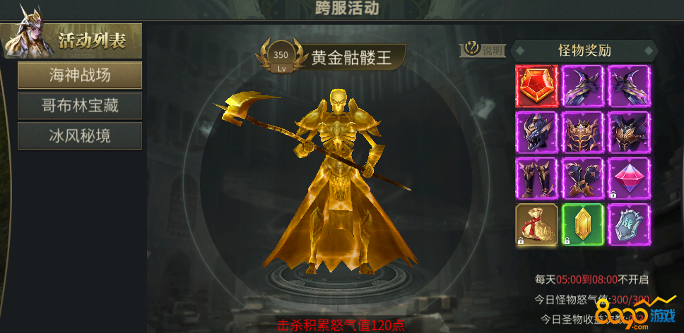 跨服活动-海神战场, 开服第二天开启,玩家可以通过采集海蓝水晶或者海蓝圣晶获得经验卷,每天最多采集3次