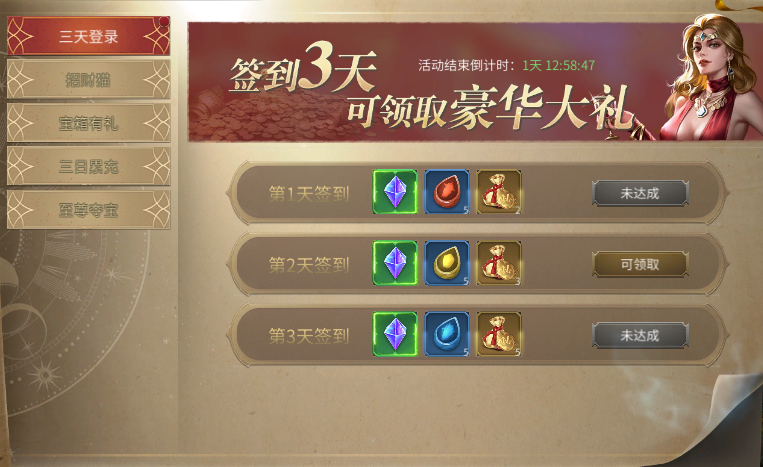VIP3:奖励翅膀经验丸*30、1000点伙伴声望卡*1、十万铜币袋*3;