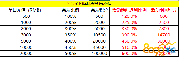 3、积分只可选择现有的7个档位。例如累积充值1200元,可兑换2000积分+当日剩余200元