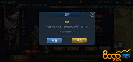 通过敬酒可降低切磋对象的战力,每日仅可敬酒一次。