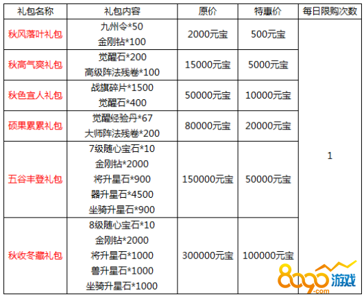 l 活动期间可购买超值优惠大礼包,具体对应礼包内容情况: