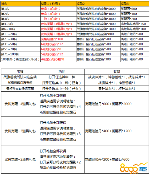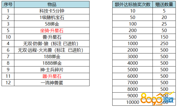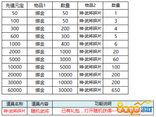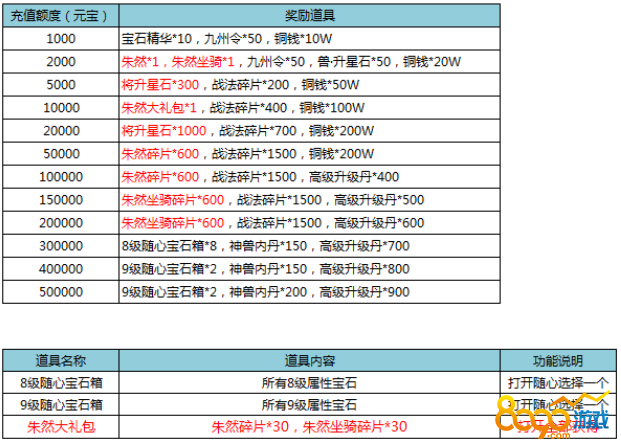 l 活动期间,充值达标即可领取对应奖励。具体对应档次奖励情况: