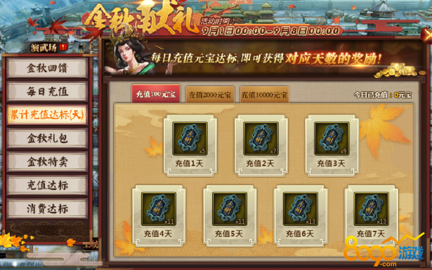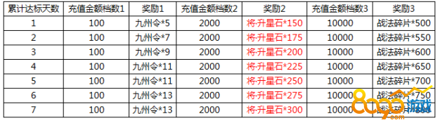 l 活动期间,每日累计充值达标即可领取对应奖励。具体对应档次奖励情况: