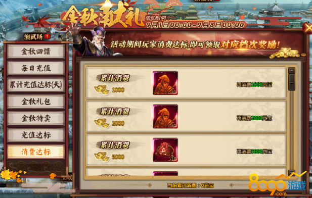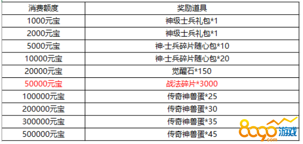 l 活动期间,玩家消费达标即可领取对应档次奖励。具体对应档次奖励情况: