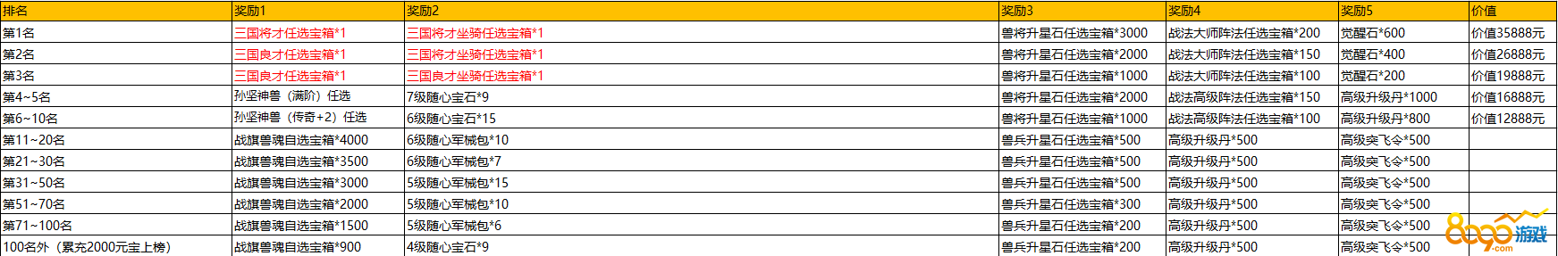 1、累充达到2000元宝才能上榜;