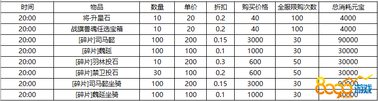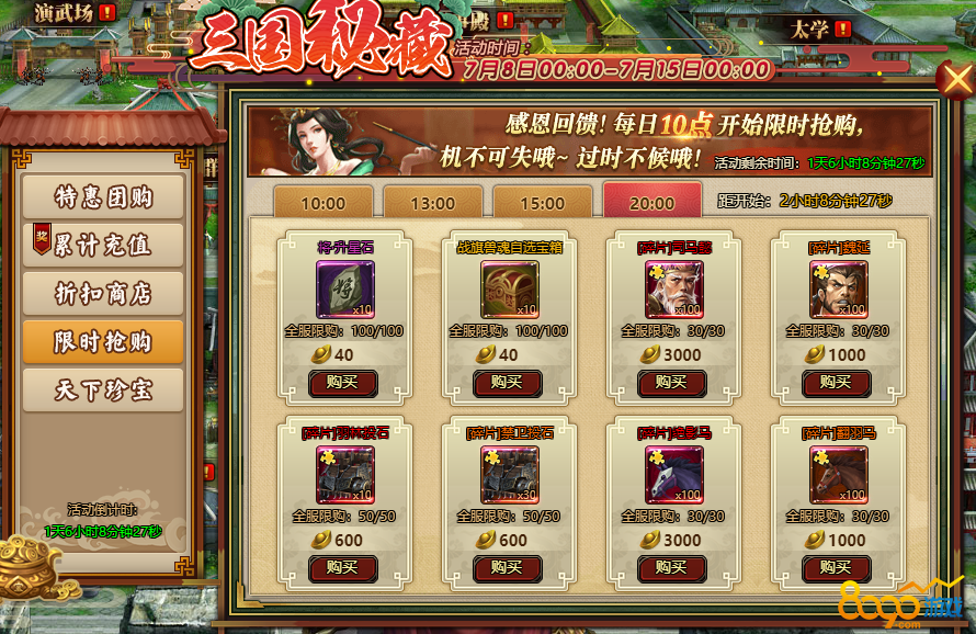 l 每天10:00,13:00,15:00,20:00四个时段限时抢购优惠道具,每日重置;