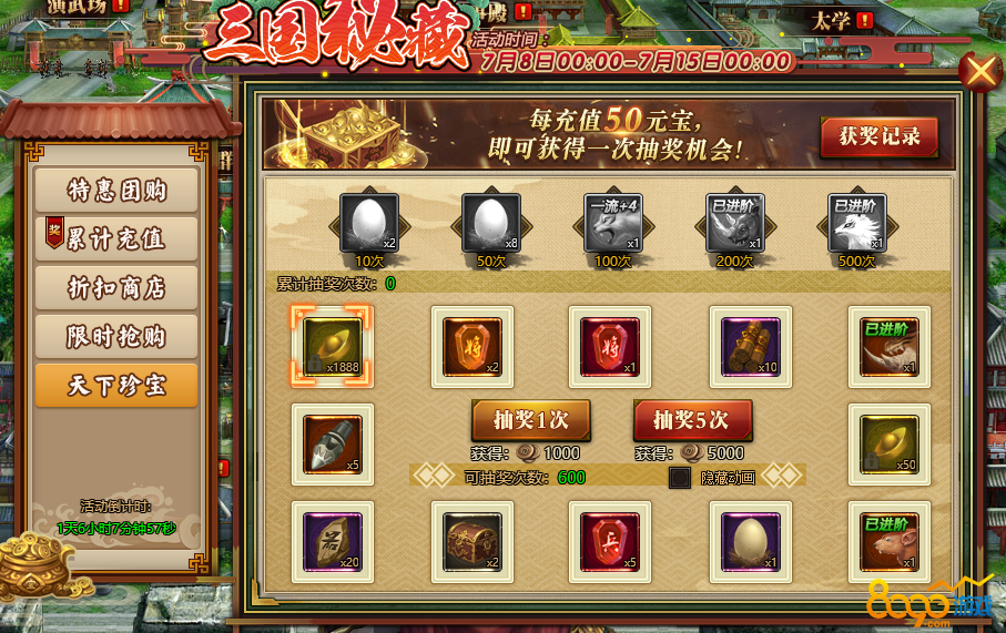 l 每个道具都有购买次数限制,最多3次重置购买次数,分别消耗100、200、300元宝。