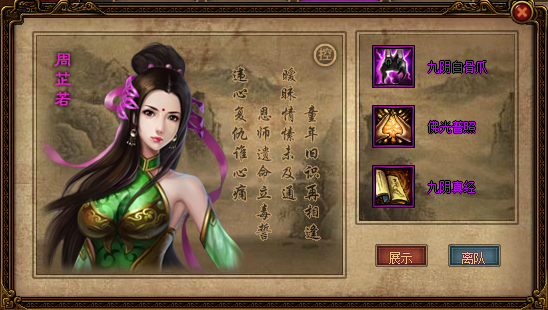 任盈盈为蓝色侠,可开启山庄缠绵功能;