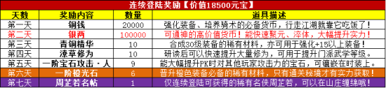 连续7天登陆,即可领取总价值高达18500元宝的超值奖励!